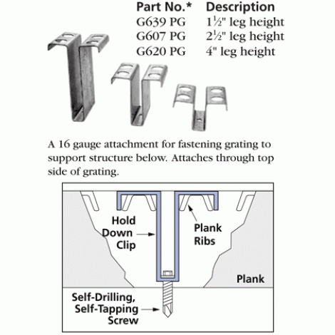 G607, G620, G639 - Hold Down Clip